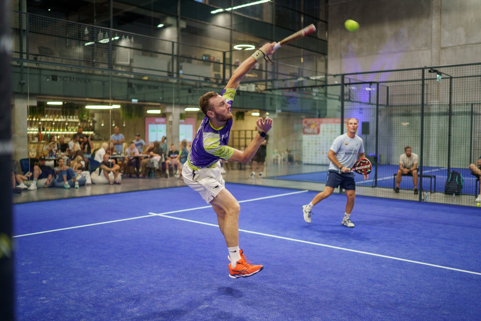 Tradicinis „Jūros šventės padelio čempionatas" 2024 metais grįžo didesnis nei bet kada – liepos 27–28 dienomis „Padelio namai" aikštynai tapo didžiausios padelio fiestoje Lietuvoje. Net 11 skirtingų lygių grupių vyrams ir moterims, žaidėjai iš visos šalies ir daugiau kaip 8 000 eurų vertės rėmėjų prizų – šis čempionatas įtvirtino savo vietą kaip svarbiausias metų padelio renginys. Kiekvienas dalyvis gavo startinį dovanų paketą, „Bullpadel" kamuoliukus, „Vichy" vandenį, šviežių vaisių ir užkandžių, o nugalėtojai – specialiai šiam turnyrui sukurtas unikalaus dizaino statulėles. Dviejų dienų šventę vainikavo bendras vakarėlis „Sotus Vilkas PICA ir DUBUO"